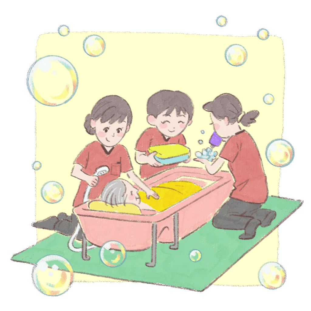 その他介護福祉士や利用者様が気持ち良く入浴することを望むスタッフが一緒に対応します。